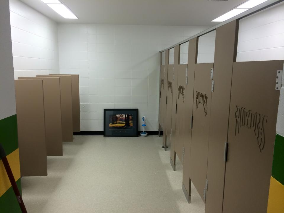 We finished installing the bathroom partitions at Al Lang Stadium home team locker room. The Rowdies soccer team plays their home games there. We had their team name engraved in the doors. They turned out great.